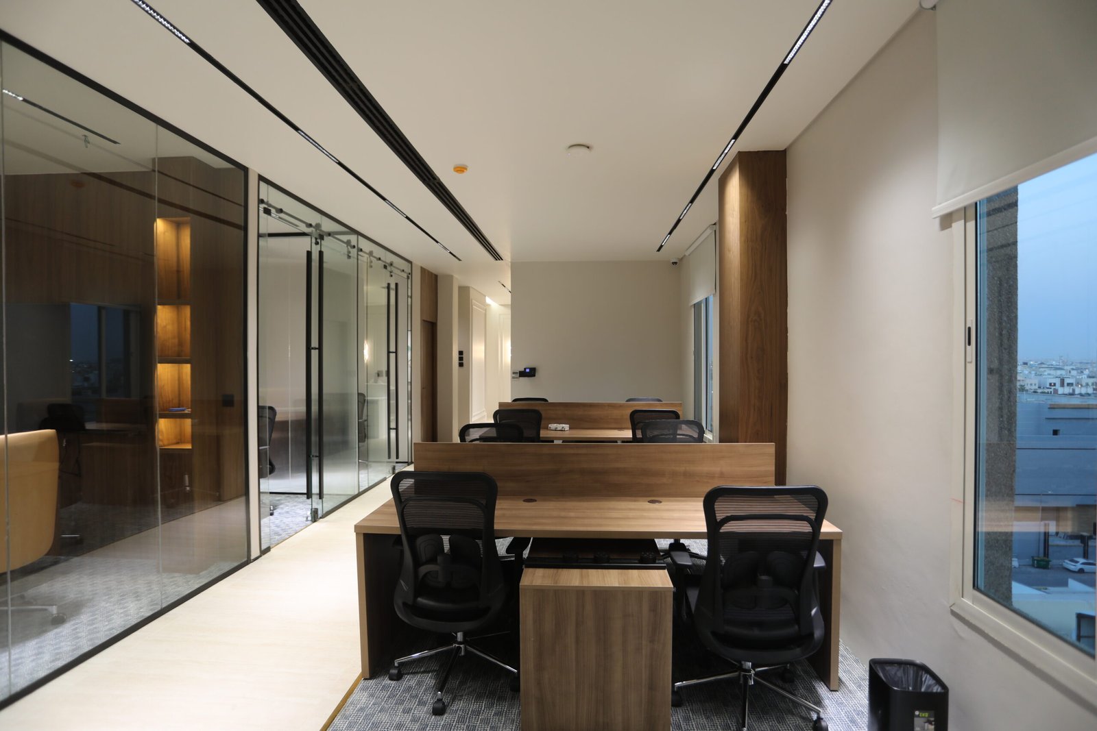 قامت شركة المقبل بتقديم خدمات التصميم، الإشراف، والتنفيذ لمكتب إداري في مدينة الرياض، حيث تم التركيز على خلق بيئة عمل عملية ومريحة تعكس احترافية النشاط.